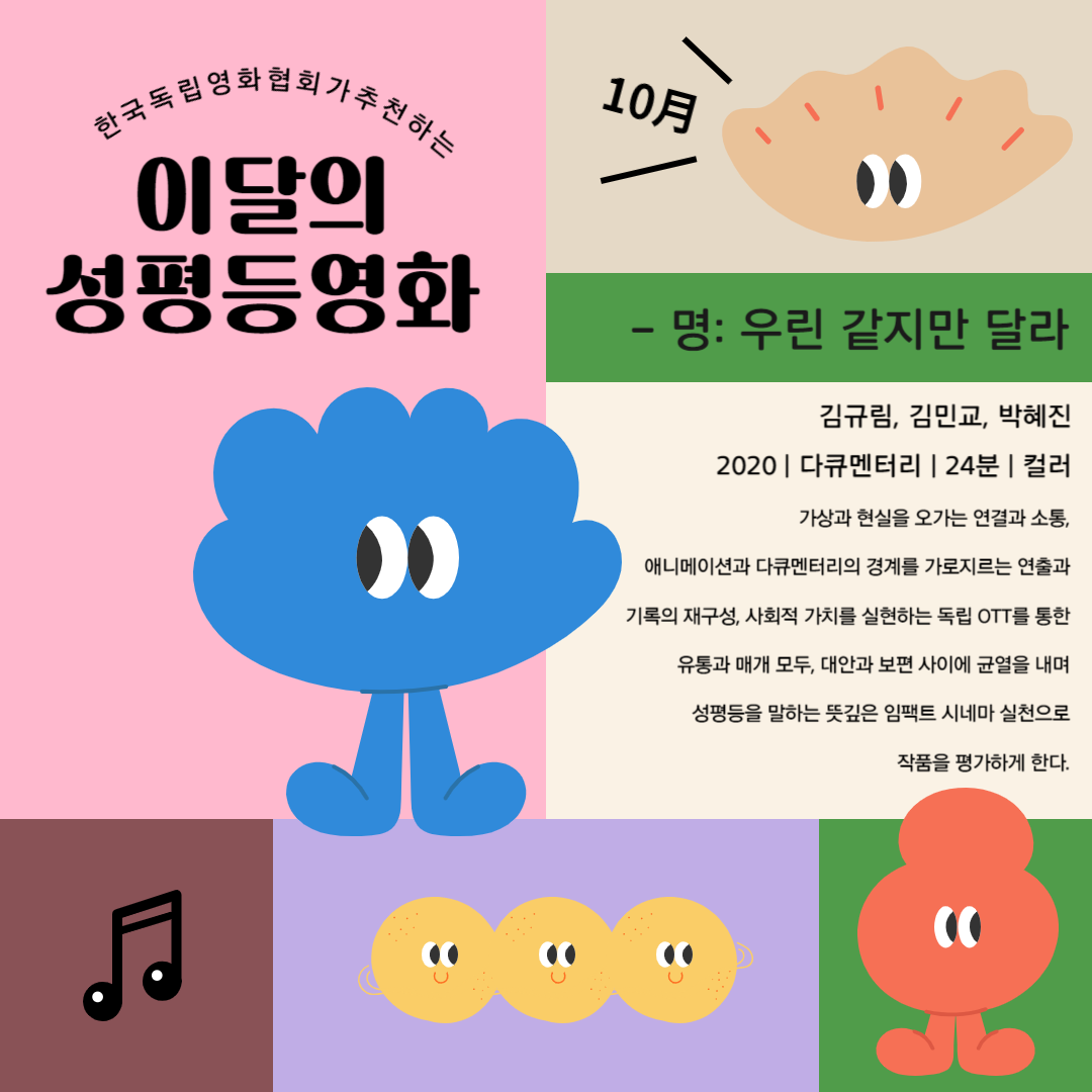 | 이달의 성평등 영화 11월 <퀴어 마이 프렌즈> 서아현 (1) | 2023.11.01 |