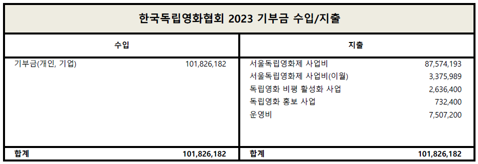 | 한국독립영화협회 기부금 수입/지출 내역(2024) (0) | 2025.03.28 |