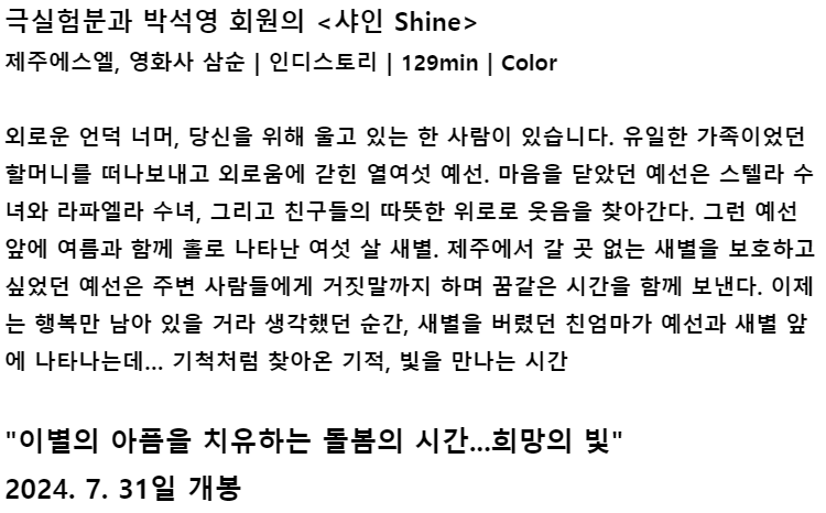 🔸양지수 instagram.com/yangsuon / 상영분과