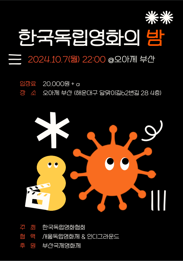 다가오는 10월 7일(월) 부산에서 ‘한국독립영화의 밤’을 엽니다.