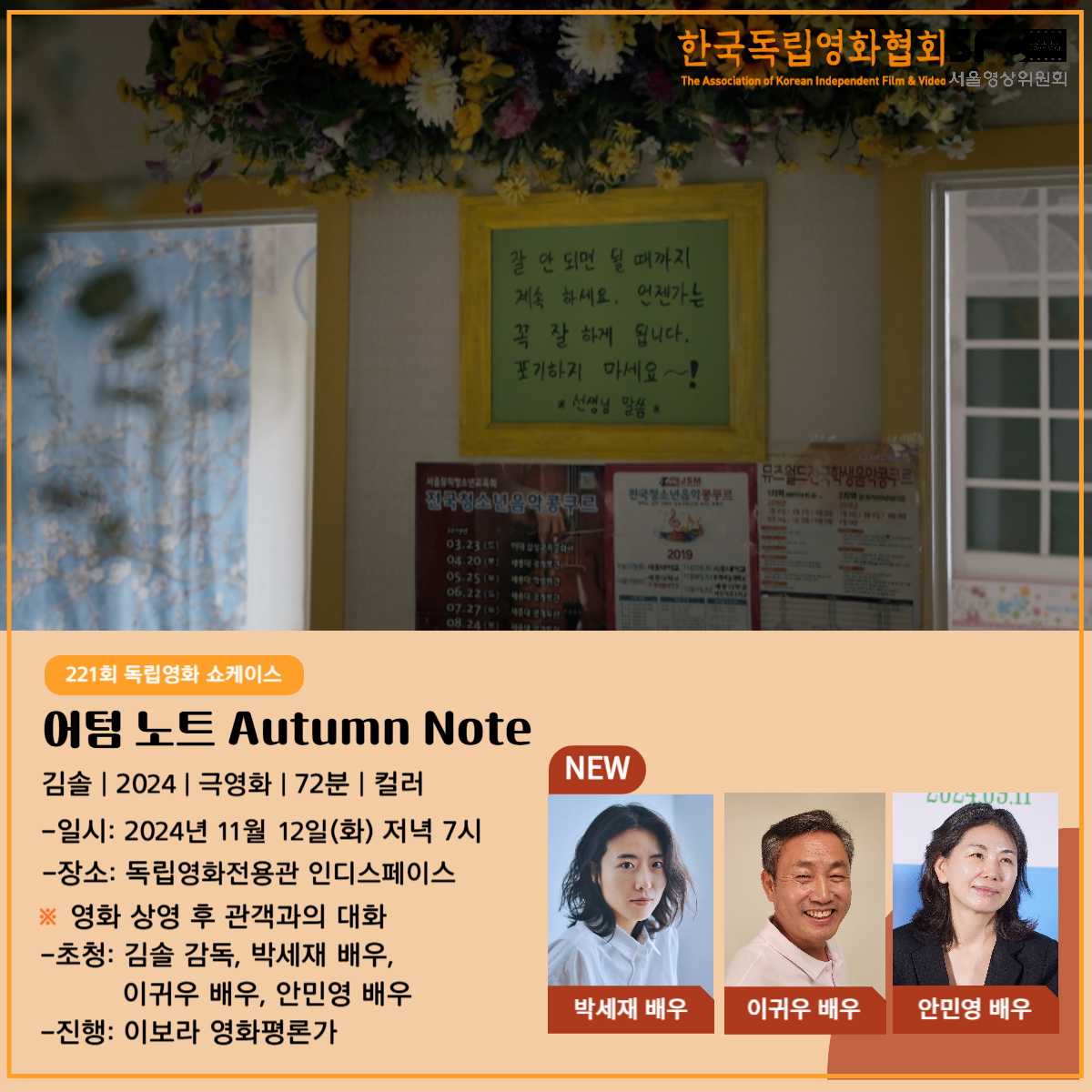 221회 독립영화 쇼케이스에서 김솔 감독님의 <어텀 노트>을 상영하며