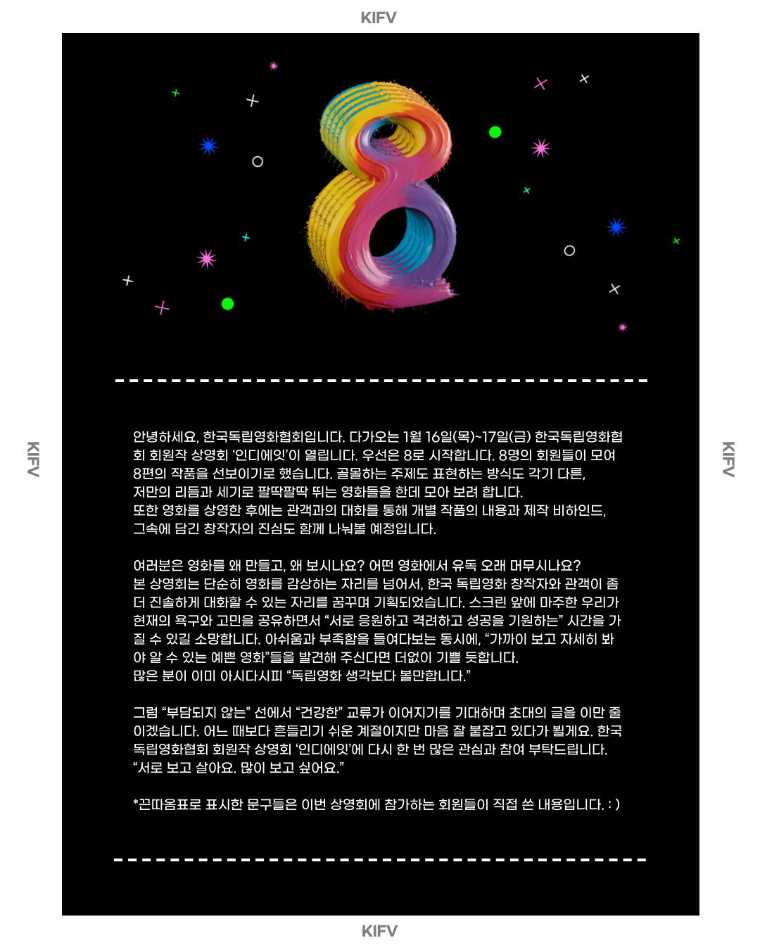[01.16-17] 2025 한국독립영화협회 회원작 상영회 '인디에잇' 개최