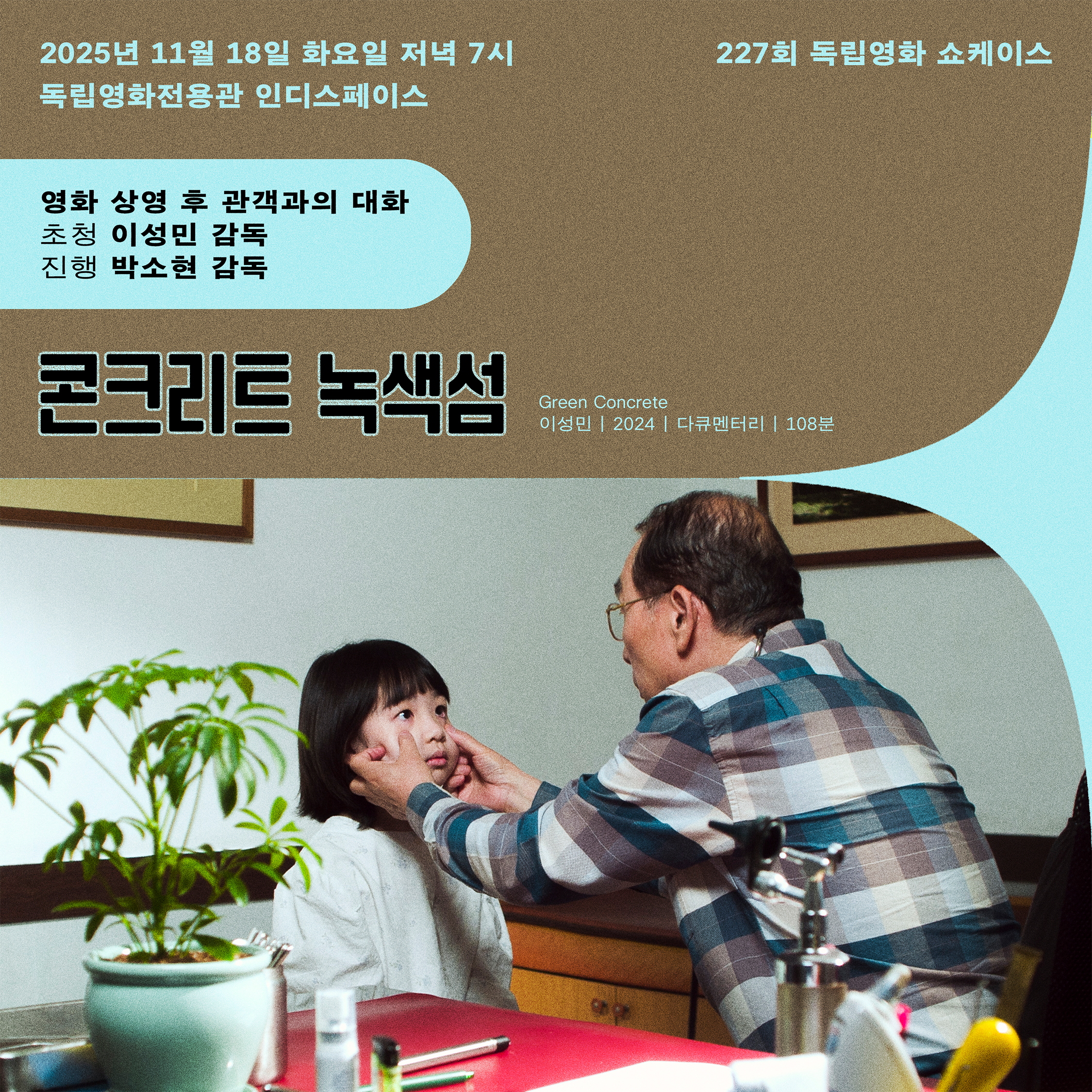227회 독립영화 쇼케이스에서 이성민 감독의 <콘크리트 녹색섬>을 상영합니다.