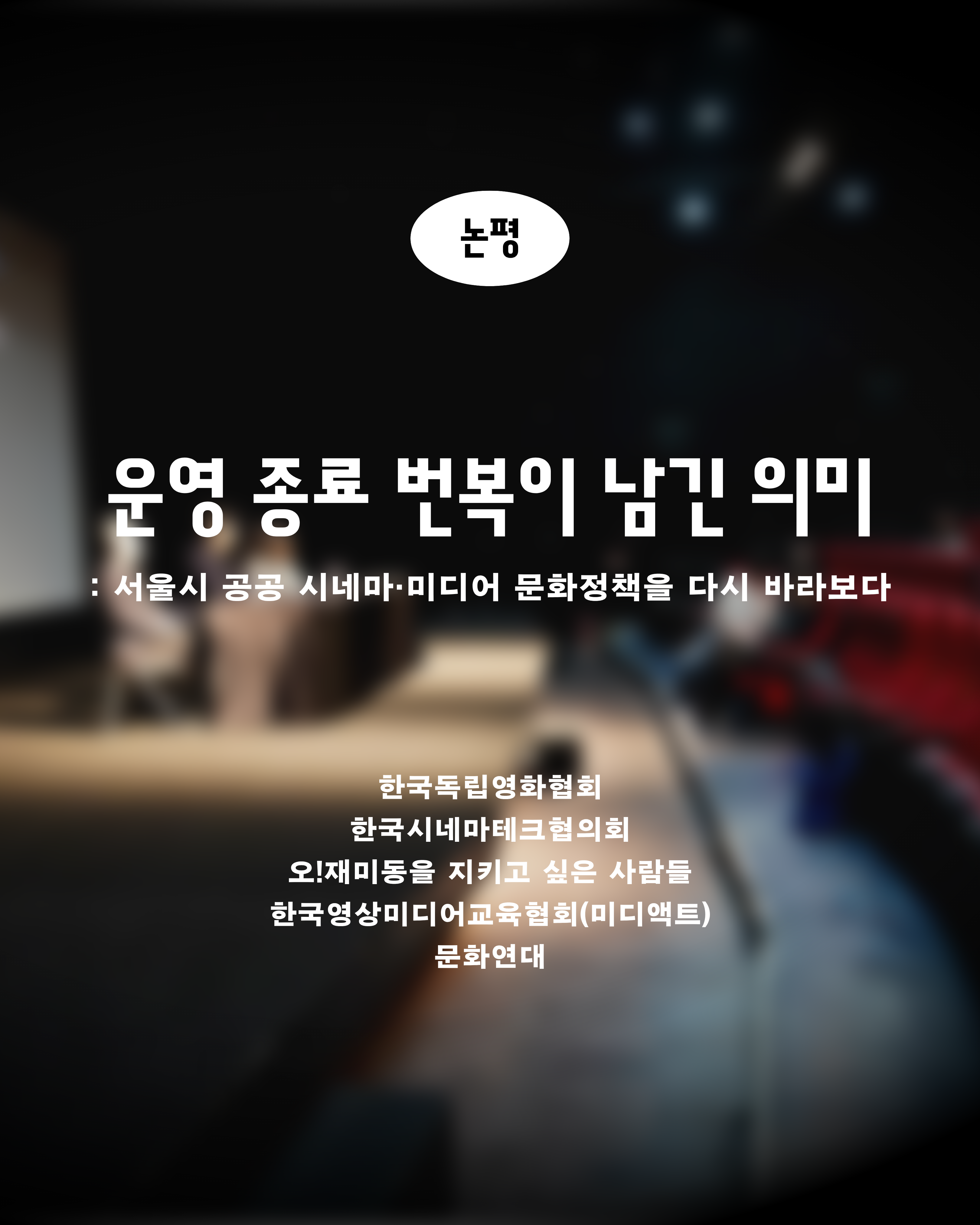 운영 종료 번복이 남긴 의미 : 서울시 공공 시네마·미디어 문화정책을 다시 바라보다