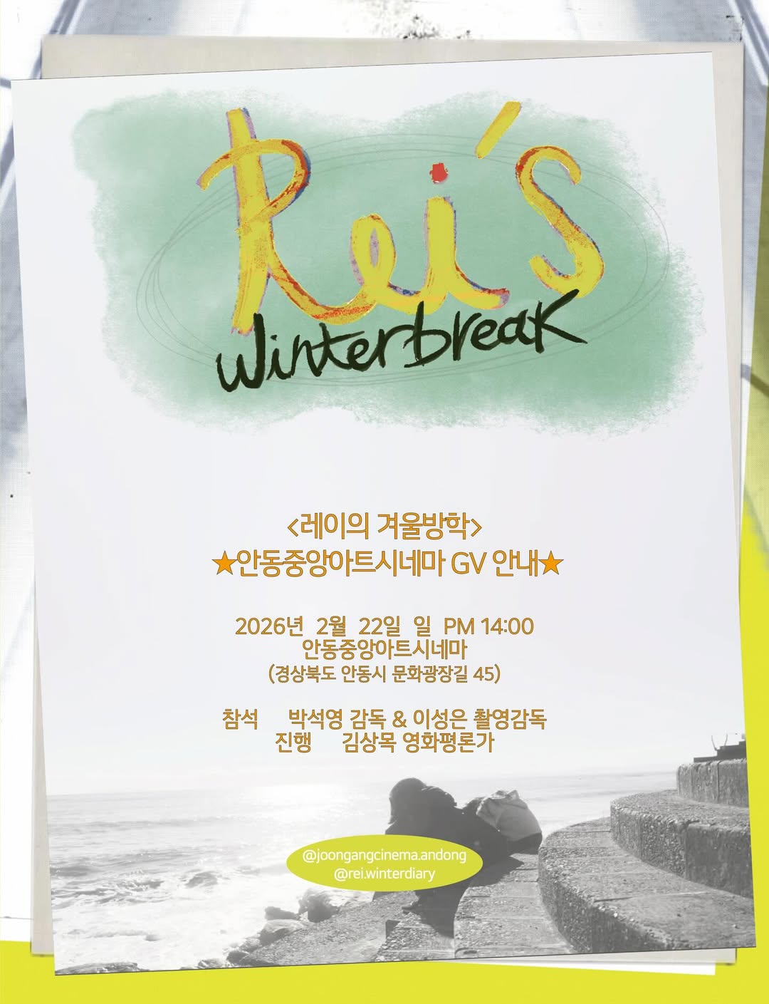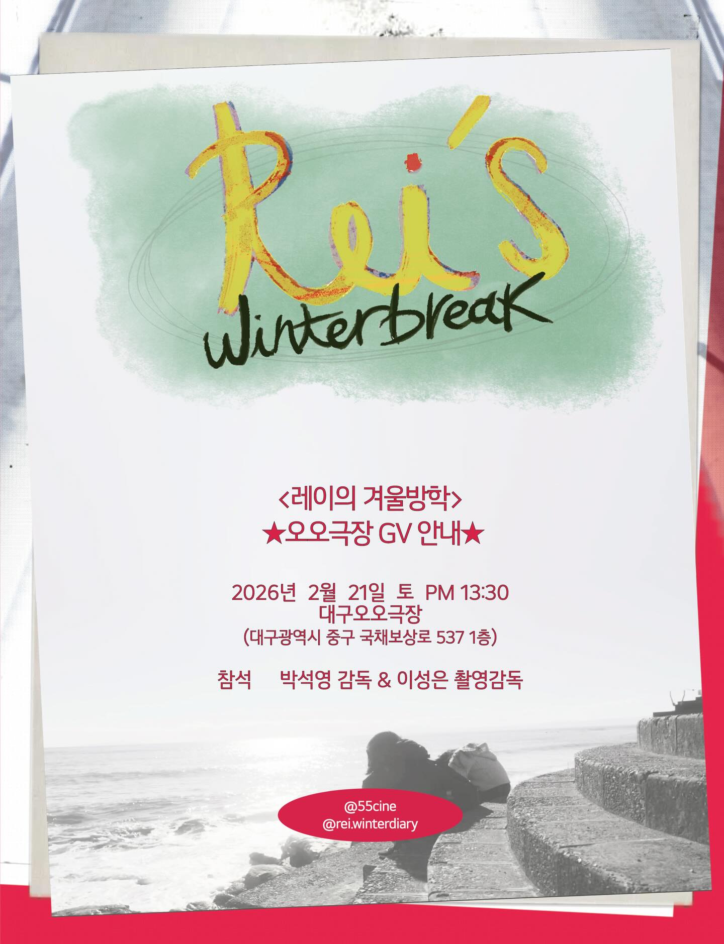 극실험분과 회원 박석영 감독님의 <레이의 겨울방학>이 2월 25일 전국 개봉을 앞두고 있습니다. 회원분들의 많은 관람과 홍보로 <레이의 겨울방학>의 개봉을 응원해주세요!