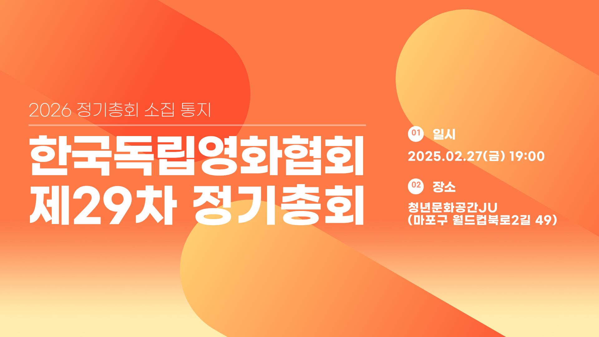 한국독립영화협회는 매년 정기총회를 통해 지난 1년간의 활동을 나누는 동시에, 새해 계획과 목표 또한 공유하고 있습니다. 부득이하게 참석하지 못하는 경우 위임장을 필수로 작성 부탁드립니다. 유난히 한파가 길어지는 탓에 몸도 마음도 추운 나날입니다. 이번 정기총회가 서로에게 힘이 되는 자리가 되었으면 좋겠습니다.