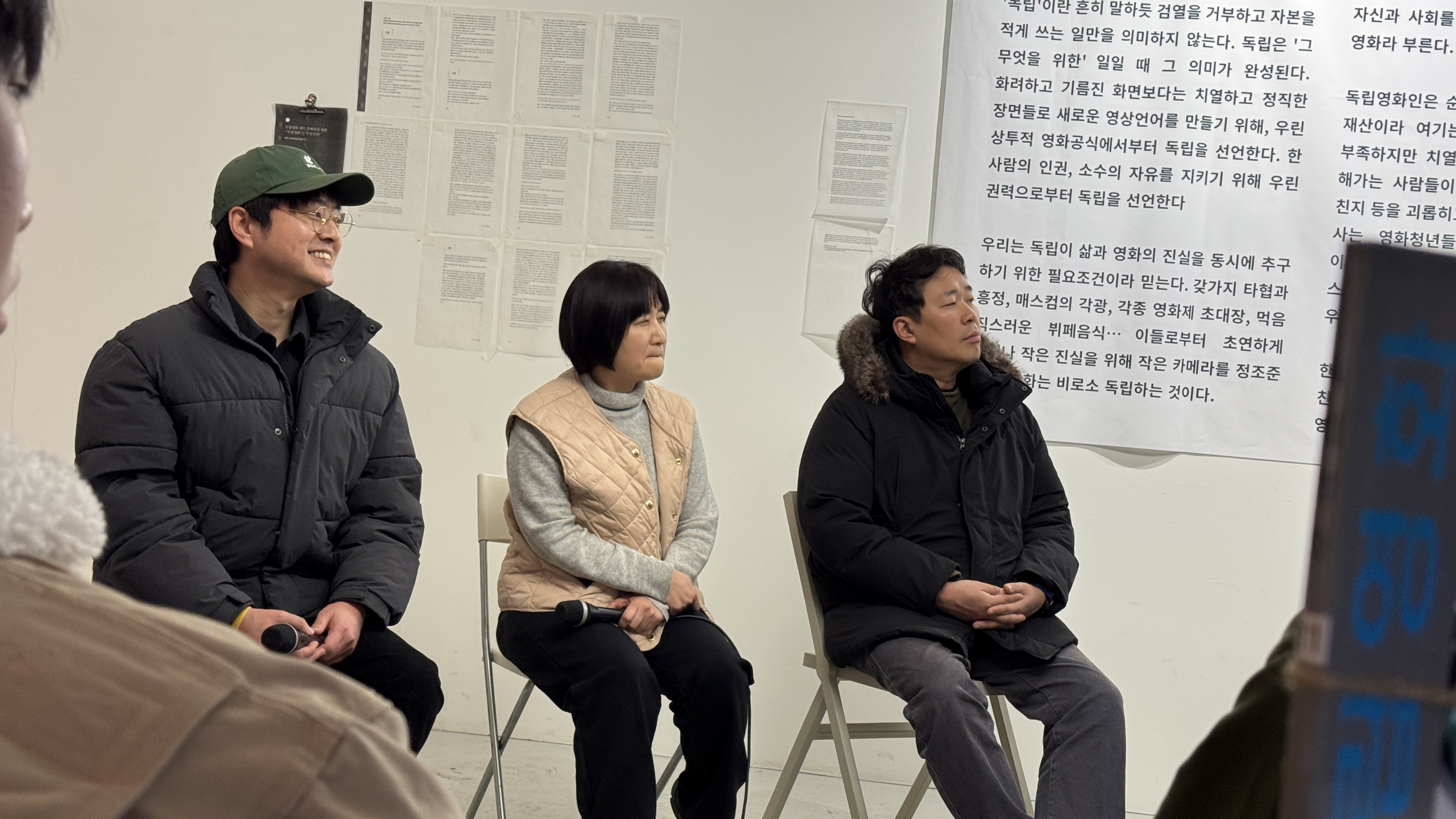 지난 달 22일과 23일, 인디스페이스에서는 한국독립영화협회 박석영 회원의 <레이의 겨울방학>, 김태윤 회원의 <아방>, 이나리혜 회원의 <우리는 전주에 와서>, 이창주 회원의 <니죽우산>, 최호영·최종호·허철녕 회원이 속한 내란청산·사회대개혁 비상행동 시민미디어팀의 옴니버스 영화 <우리는 광장에서>, 김명윤 회원의 <하늘과 바람과 별과 섬>, 조영근 회원의 <퍼플 스왈로우>, 김지민 회원의 <환희를 기다리며>가 상영되었습니다.
